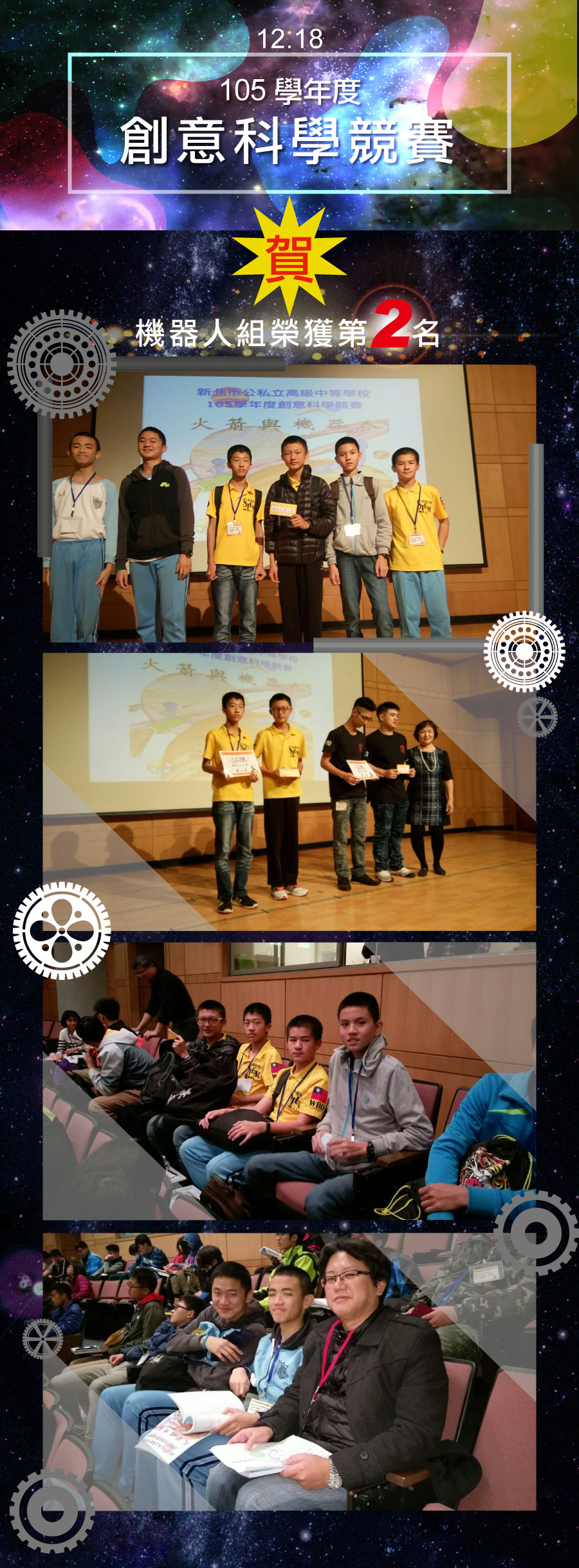 活動專區 / 校外活動 / 105 / 賀本校榮獲創意科學競賽~機器人組第2名