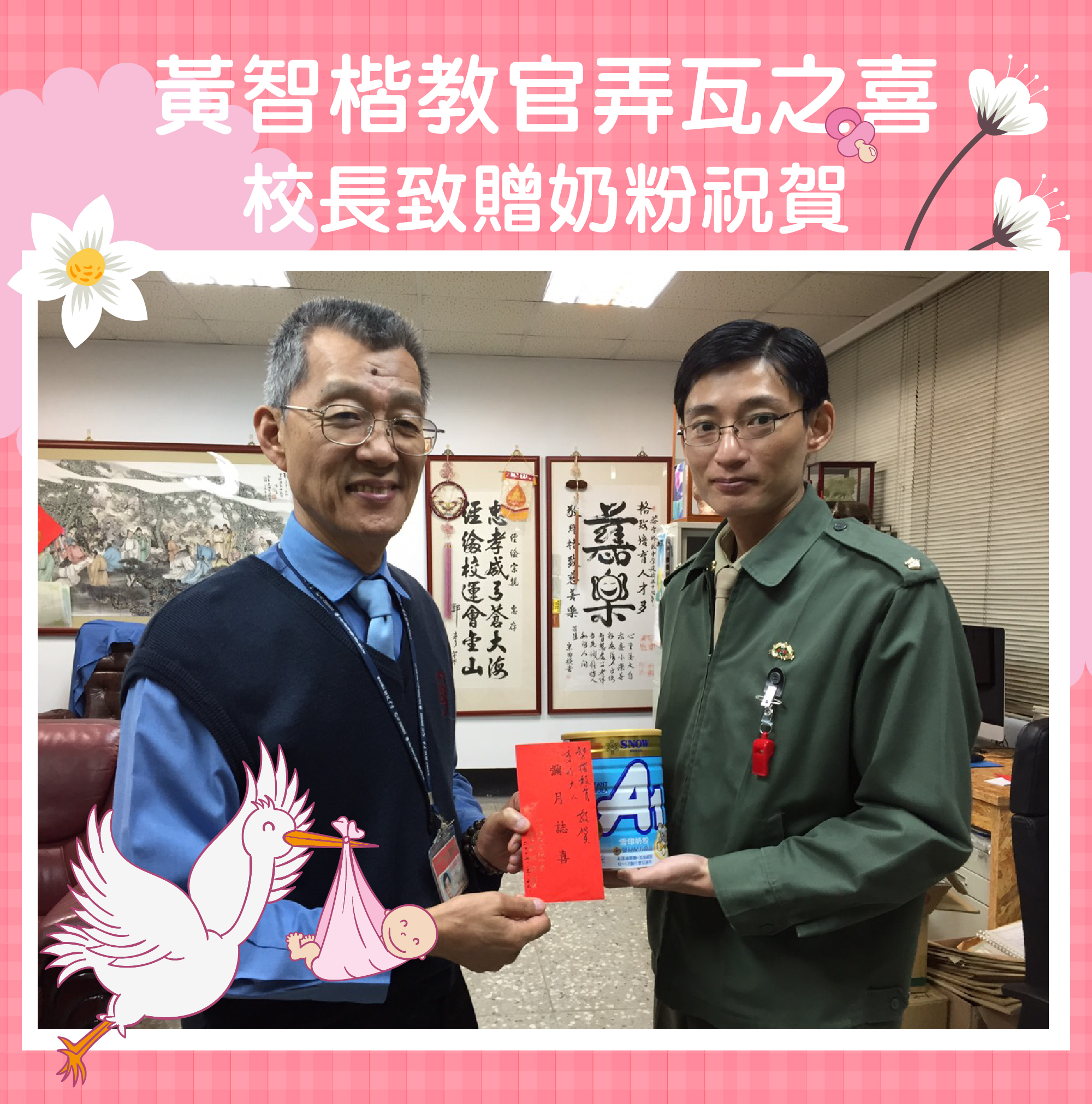 活動專區 / 彌月之喜 / 校長致贈奶粉祝賀黃智楷教官弄瓦之喜