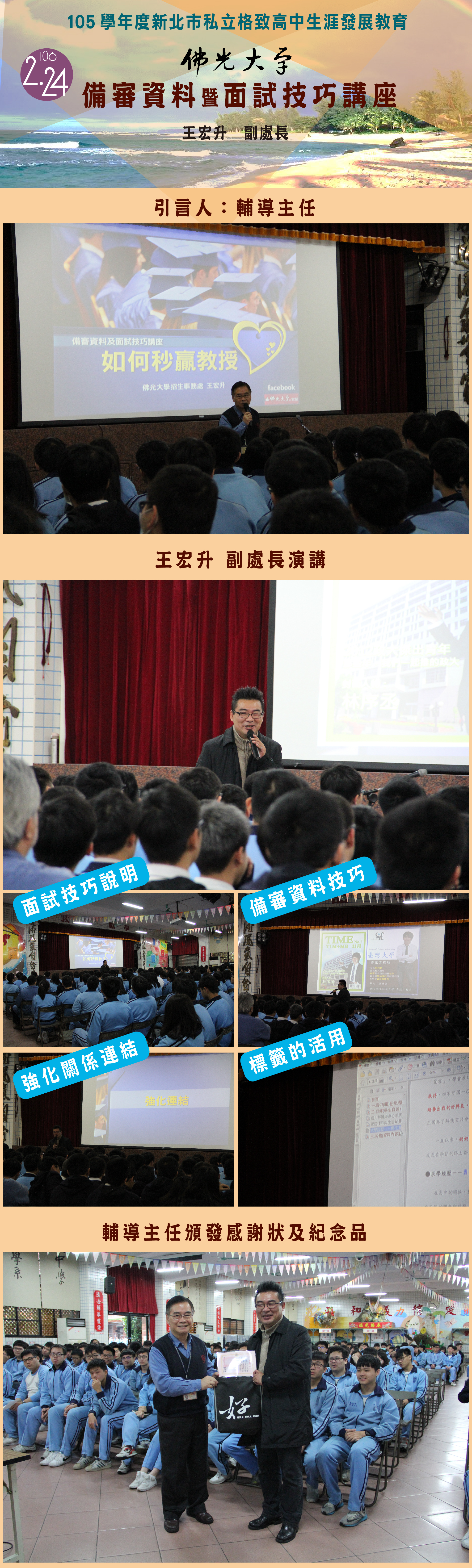 活動專區 / 校內其他活動 / 105 / 高中生涯發展教育講座:備審資料暨面試技巧準備