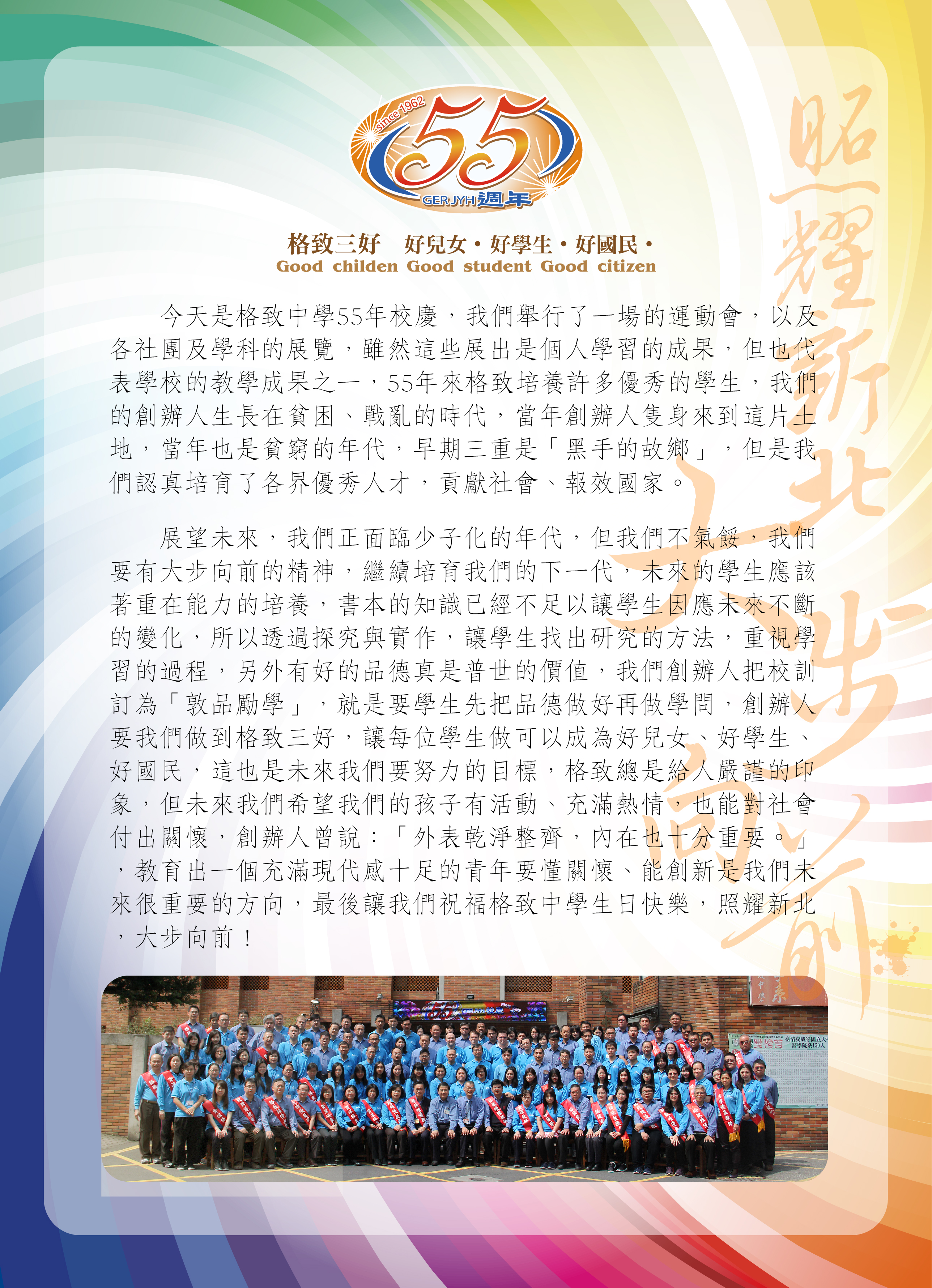 活動專區 / 校內其他活動 / 105 / 【106.04.13】格致中學55年校慶致詞