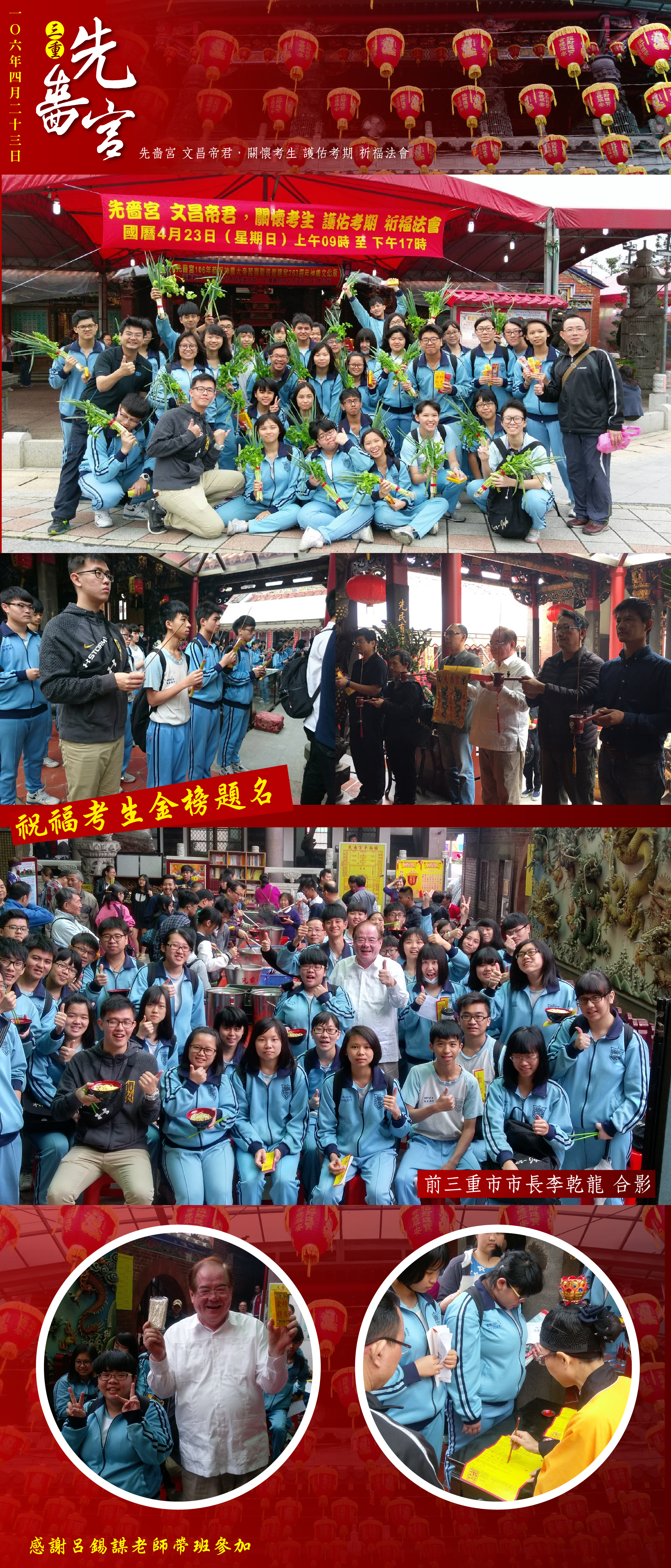 活動專區 / 校外活動 / 105 / 【106.04.23】三重先嗇宮考生祈福法會
