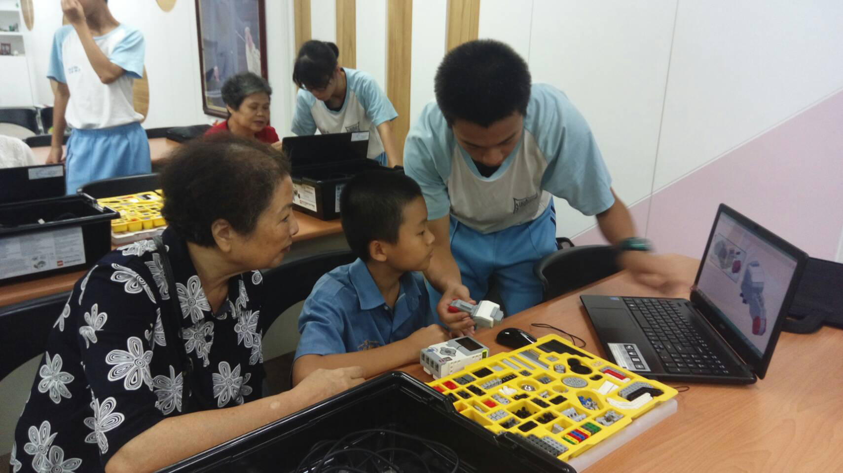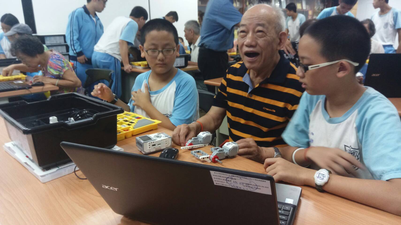 學生教導阿嬤玩樂高和機器人,增進祖孫情誼。